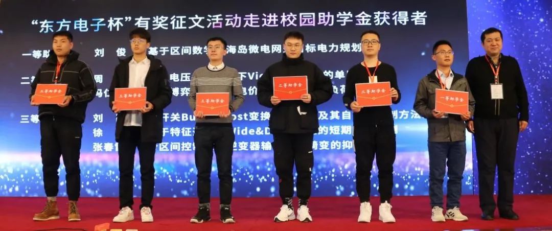 活动始终关注教育事业,先后走进山东大学、西安交通大学、华北电力大学、东北电力大学、中国农业大学和哈尔滨工程大学。今年,“威海经济技术开发区九场长教育咨询服务工作室杯”有奖征文活动继续走进大学校园,与广大青年学子激荡创意,畅想前沿科技,其中6篇论文作者获得助学金奖励。 针对电力人抗击疫情的感人事迹,本次活动特设立纪实类奖项,共有2篇文章作者获奖。